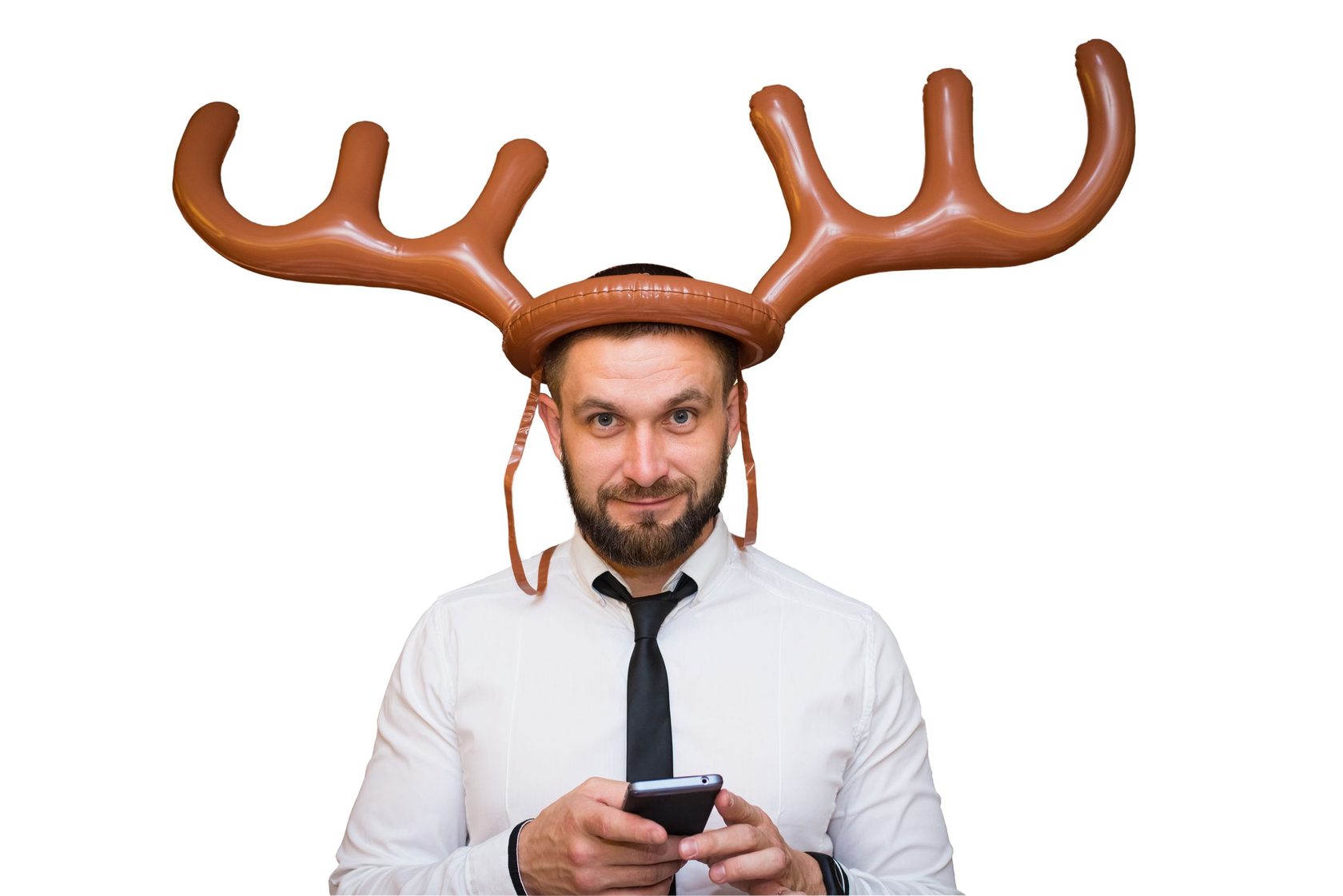 На самом деле, этот головной убор называется кольцеброс. И служит не только для красоты, но и для развлечения: в комплекте идут кольца, которые нужно набрасывать на рога. Кто забросит больше всех, тот победил. Как считаете, дорого ли стоит организовать такое соревнование, которое станет прекрасным развлечением на вашей новогодней домашней вечеринке?