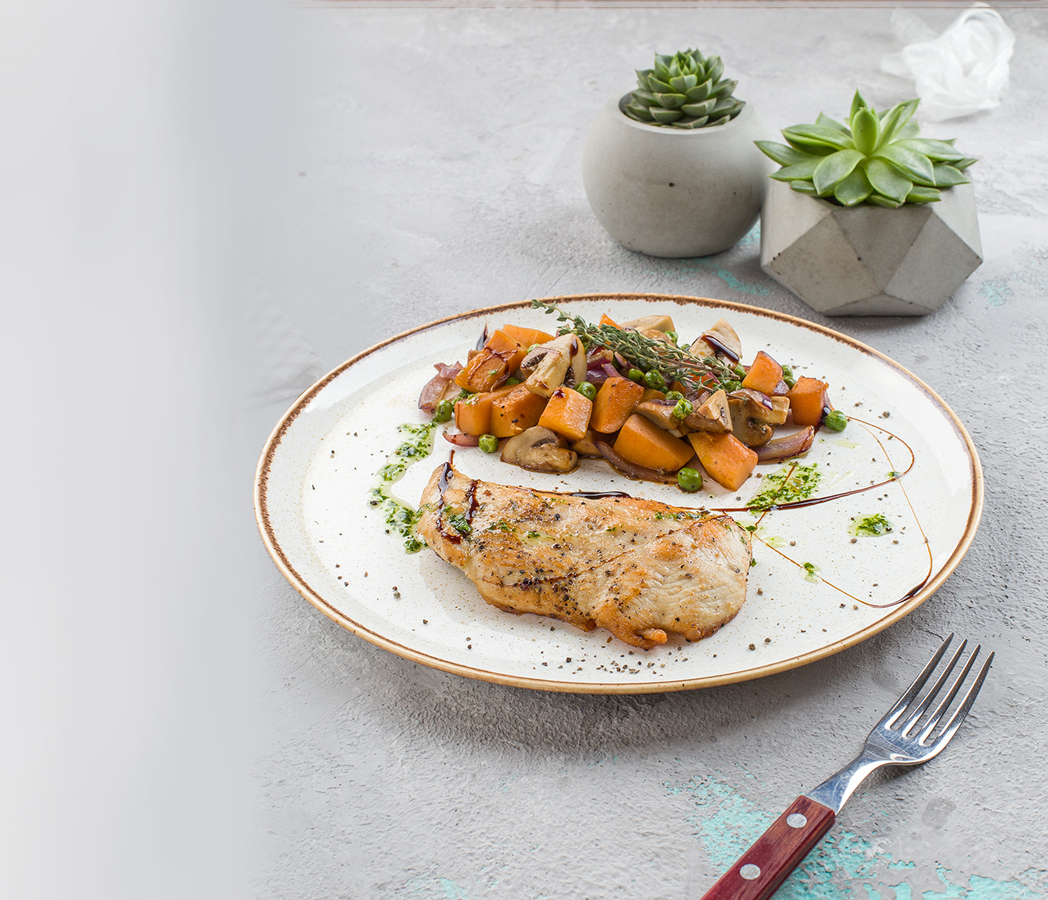 — Да, у нас появились новые вегетарианские позиции, — отвечает Максим. — Можно заказать суп Фо на овощном бульоне или оригинальный стейк из кабачка с киноа. Но вообще замечу, что у нас всегда есть выбор для тех, кто не ест мясо. Мы заботимся обо всех наших гостях.
